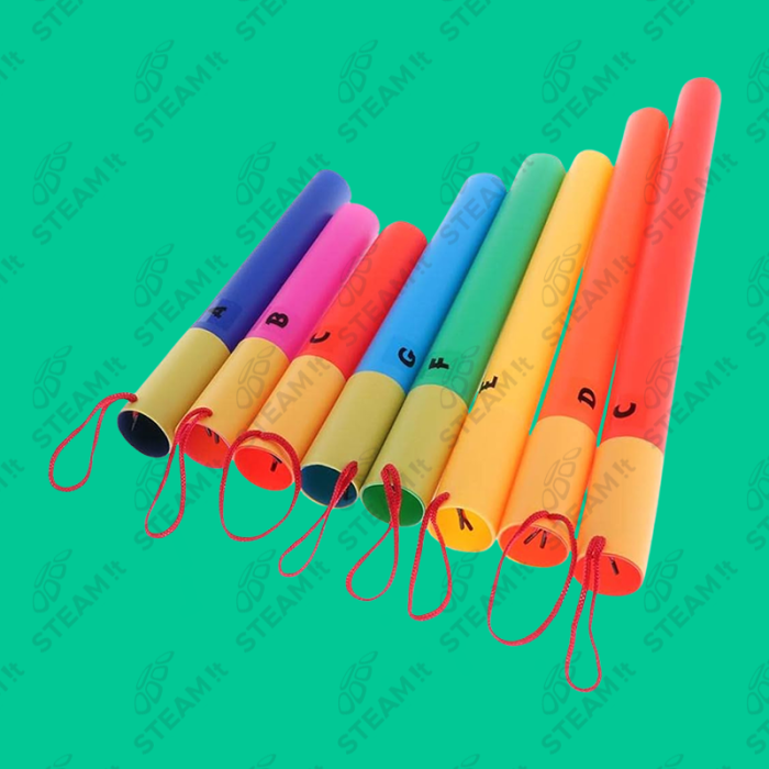 მუსიკალური მილების ნაკრები აერთიანებს 8 სხვადასხვა სიგრძის და ფერის მქონე პლასტმასისგან დამზადებულ მილს. თითოეული მილი განსაზღვრულ ნოტს გამოსცემს (C, D, E, F, G, A, B, C).